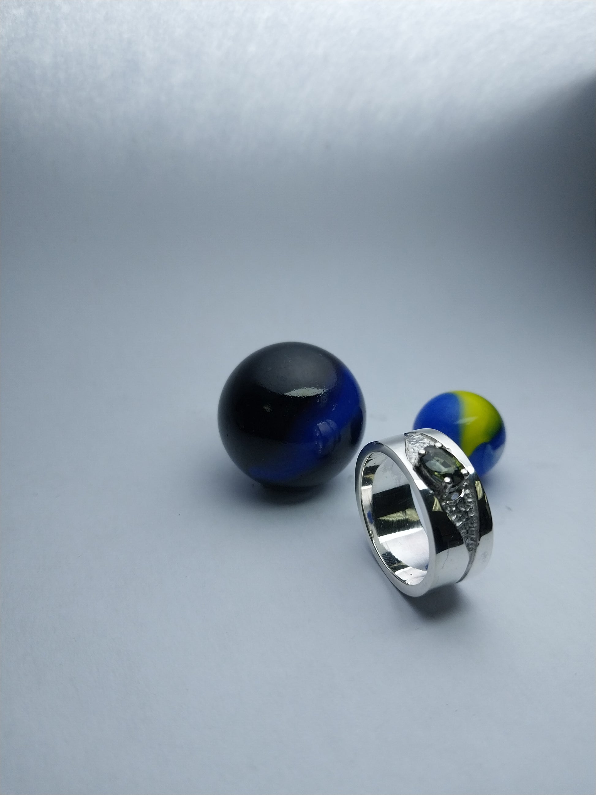 937 Sterling Silver Ring with Green Tourmaline Stone.