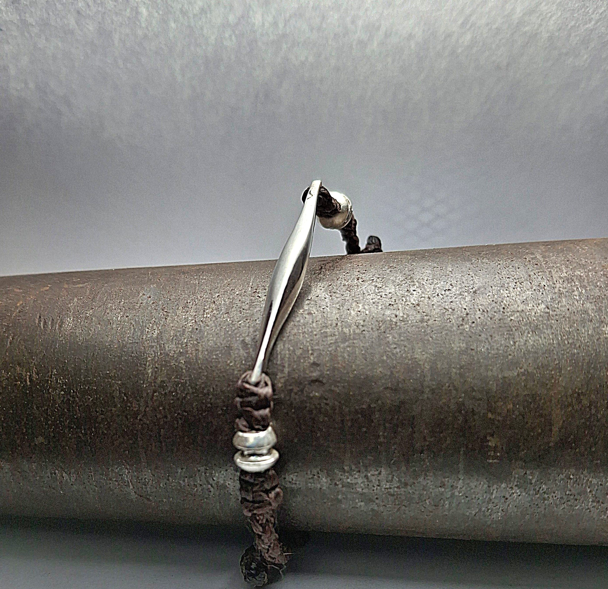 Leather bracelet with 925 sterling silver details and handmade designs.