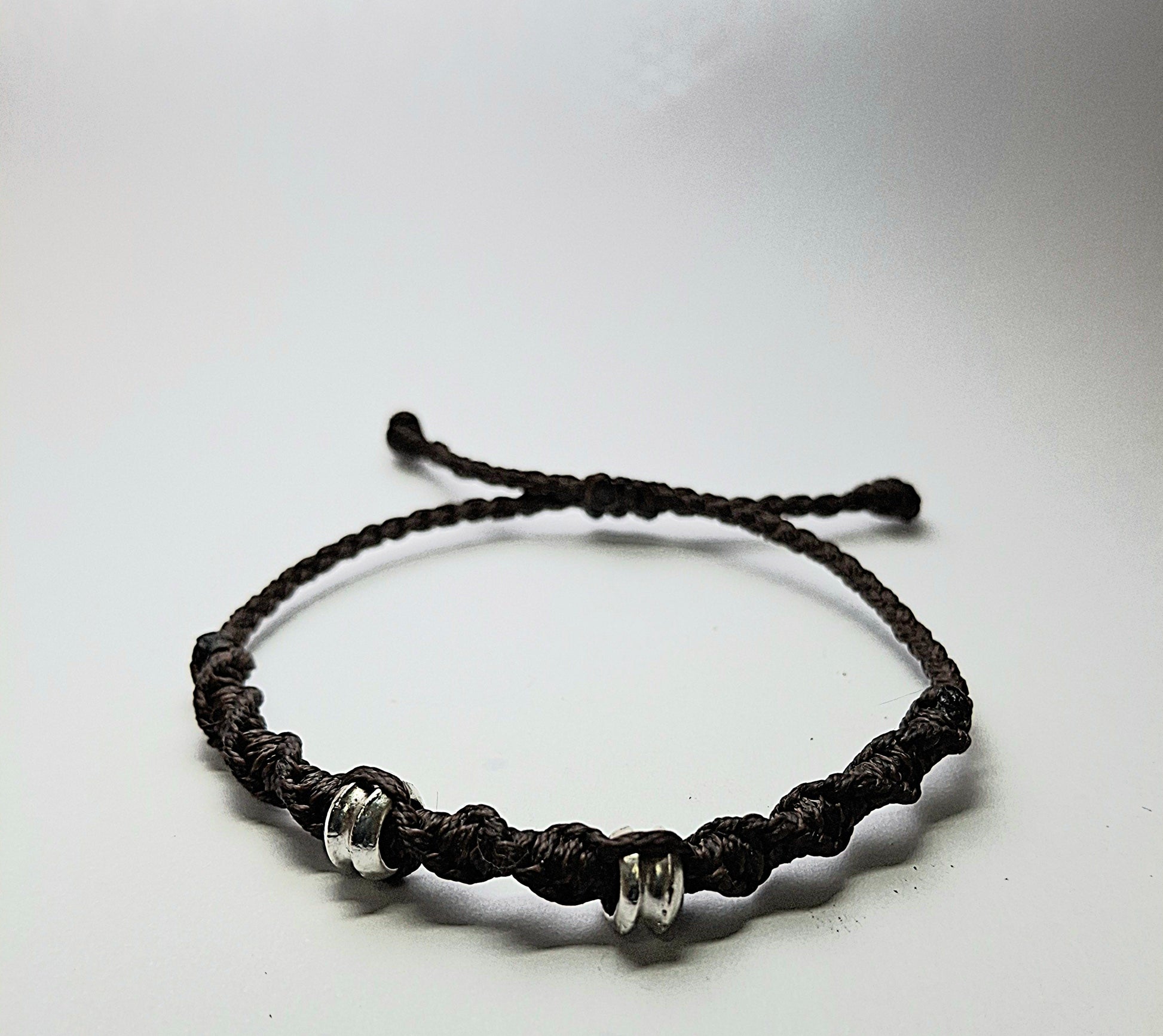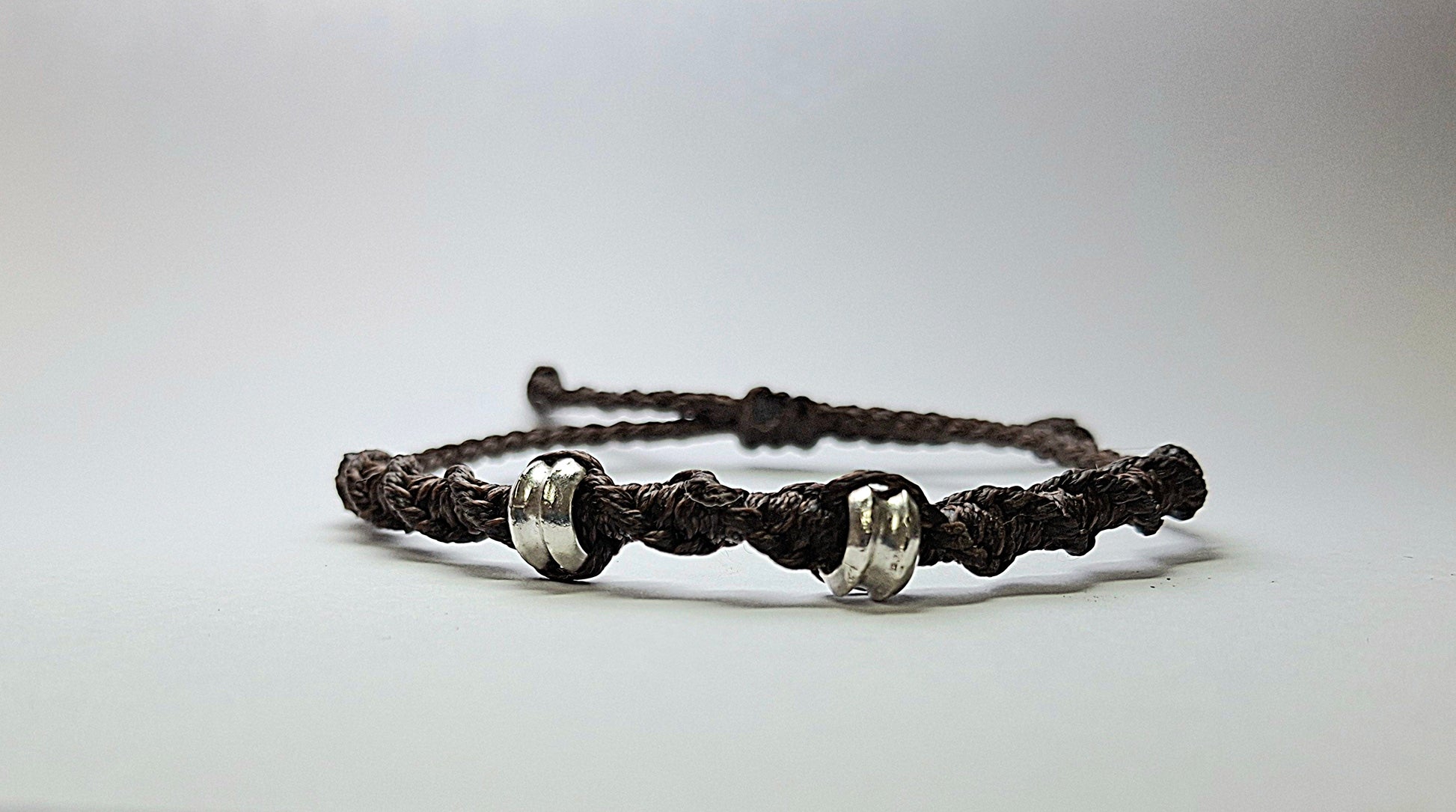 Leather bracelet with 925 sterling silver details and handmade designs.
