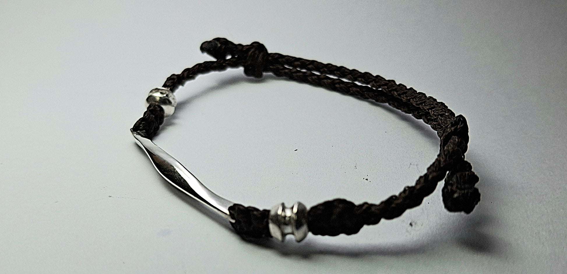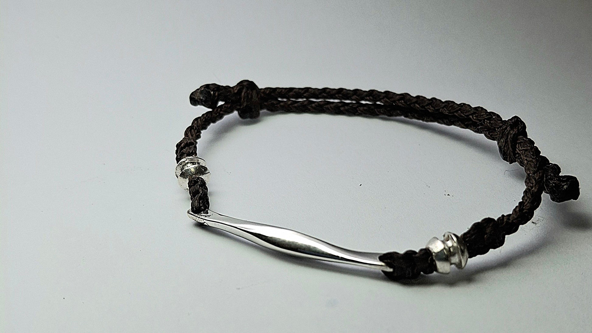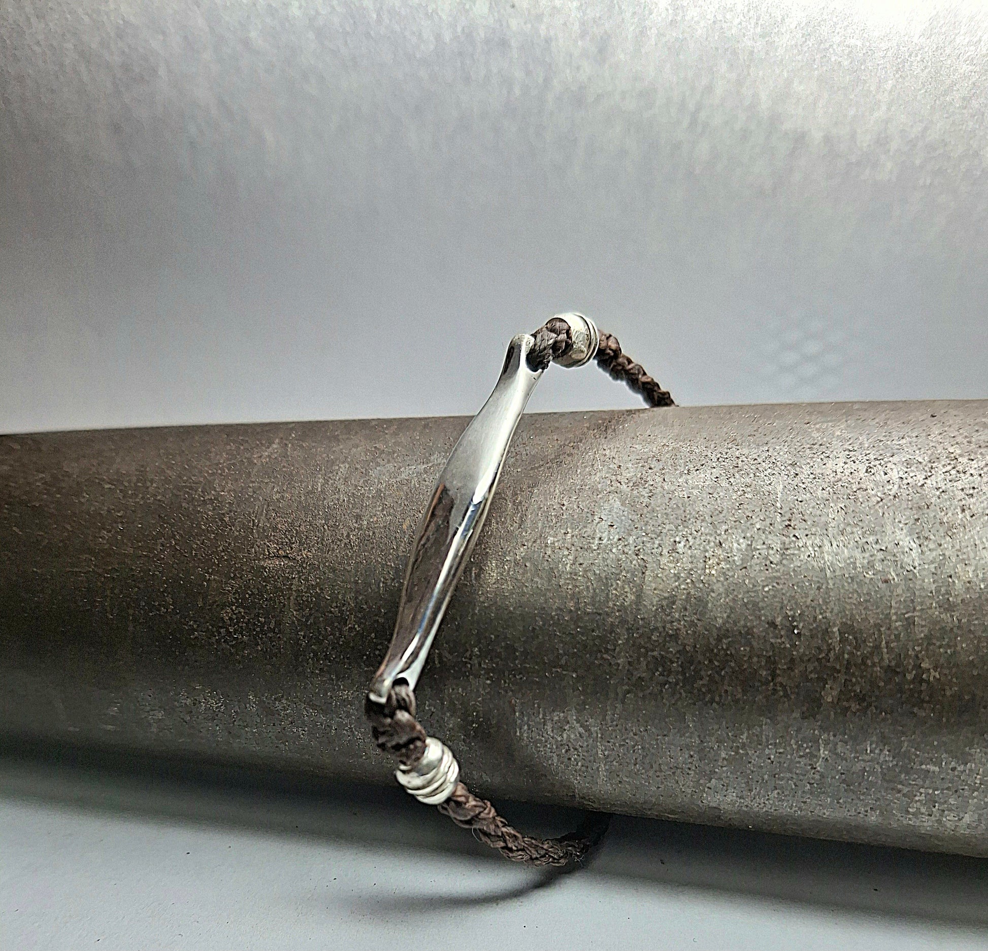 Leather bracelet with 925 sterling silver details and handmade designs.