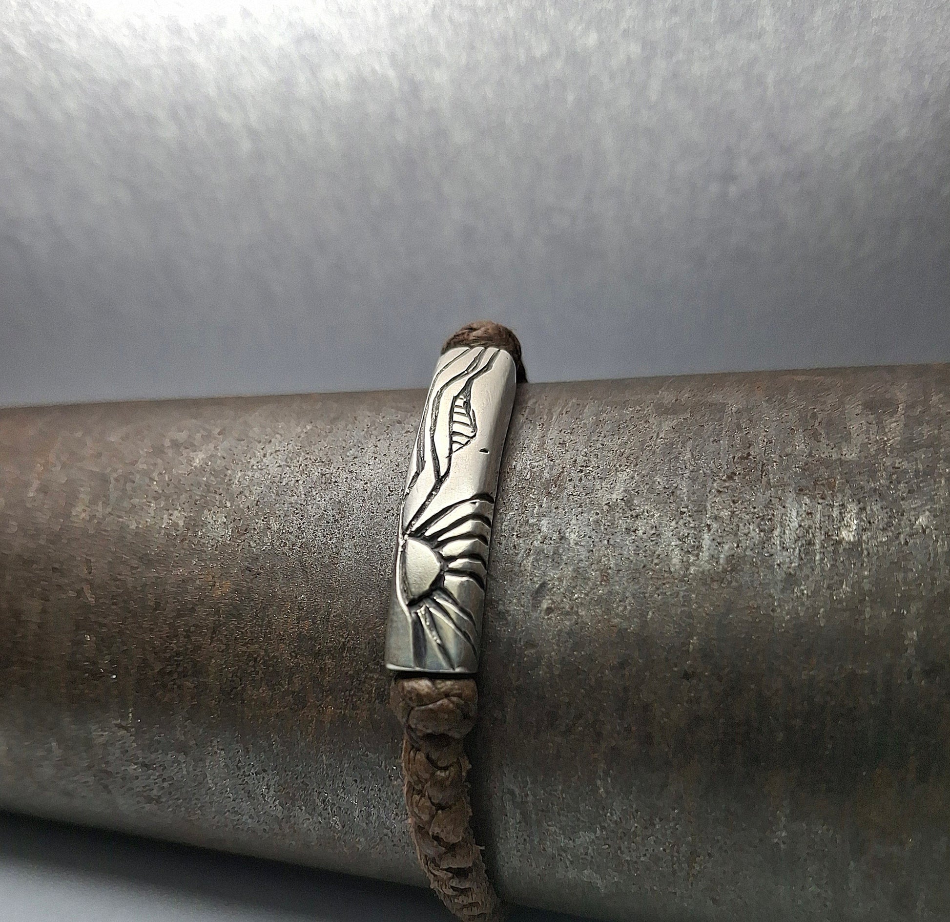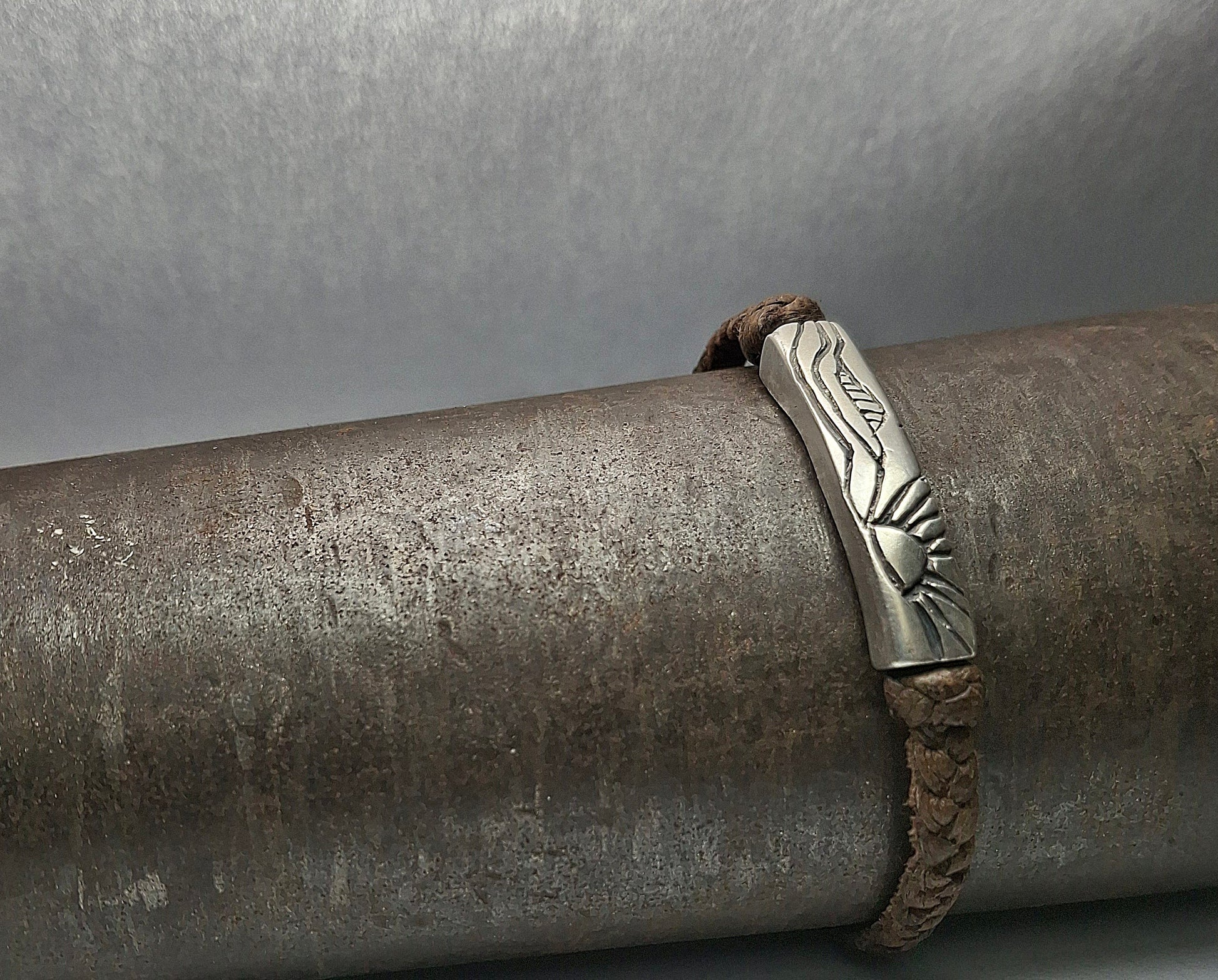 Leather bracelet with 925 sterling silver details and handmade designs.