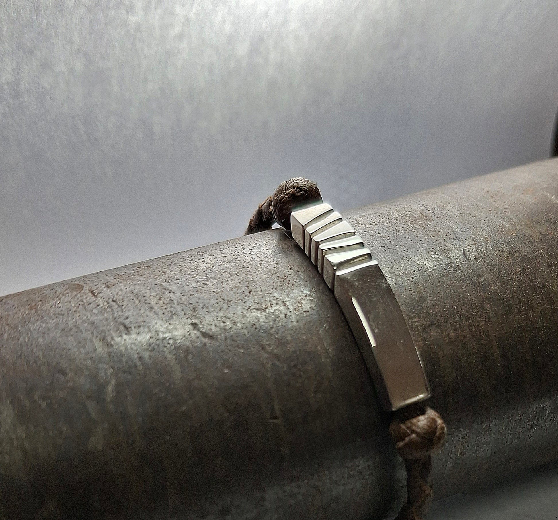 Leather bracelet with 925 sterling silver details and handmade designs.