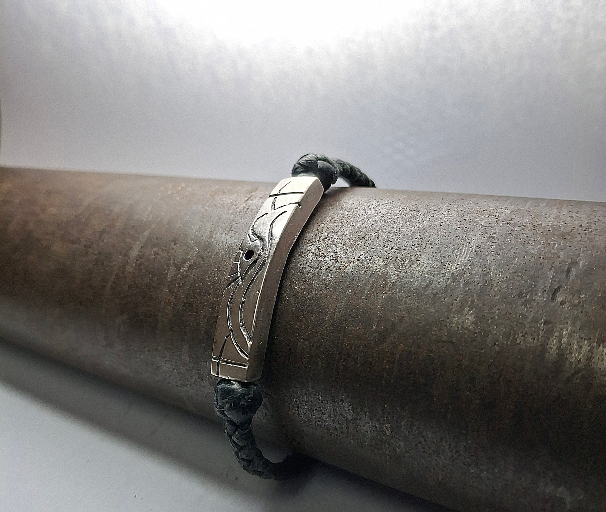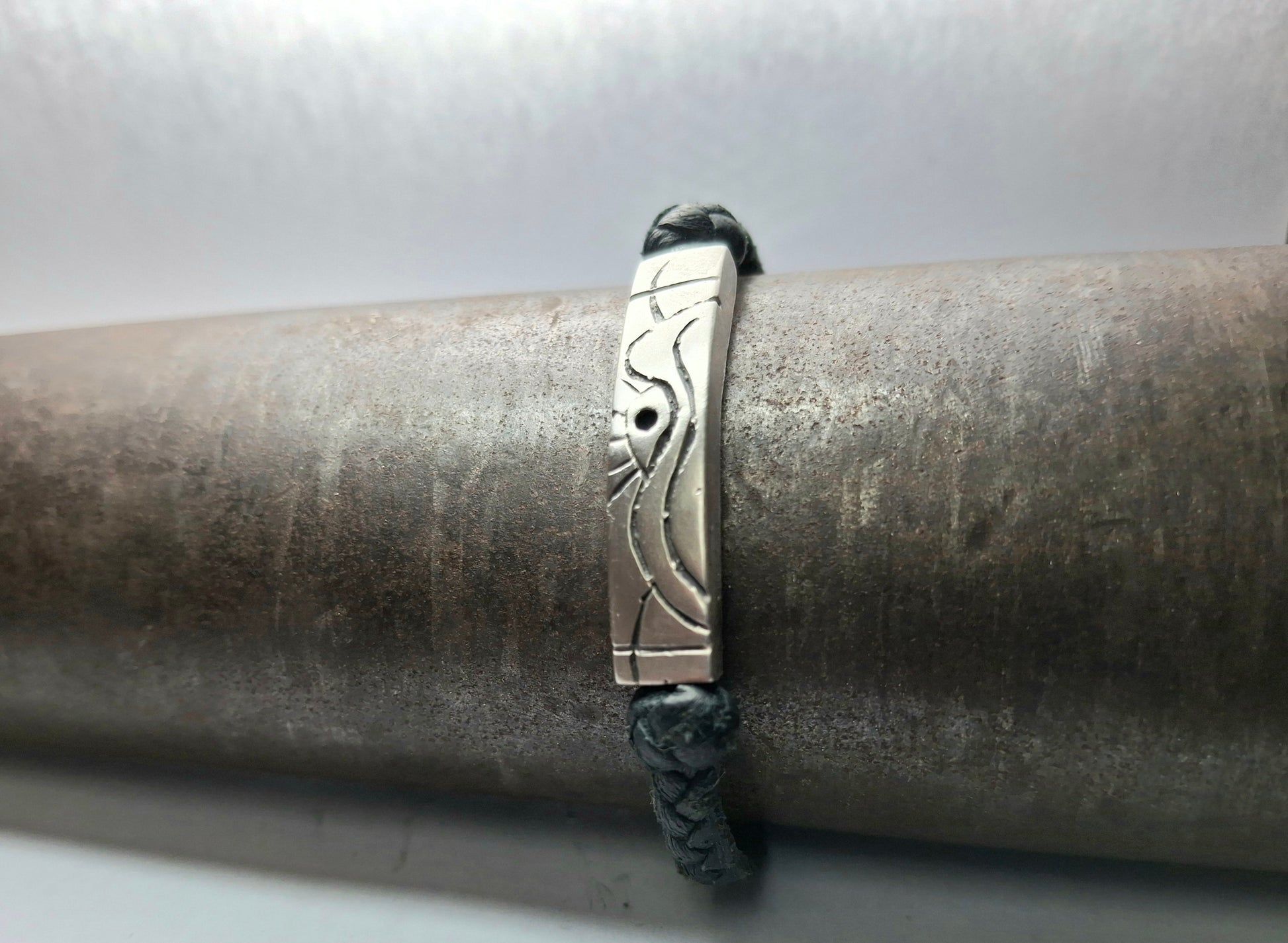 Leather bracelet with 925 sterling silver details and handmade designs.