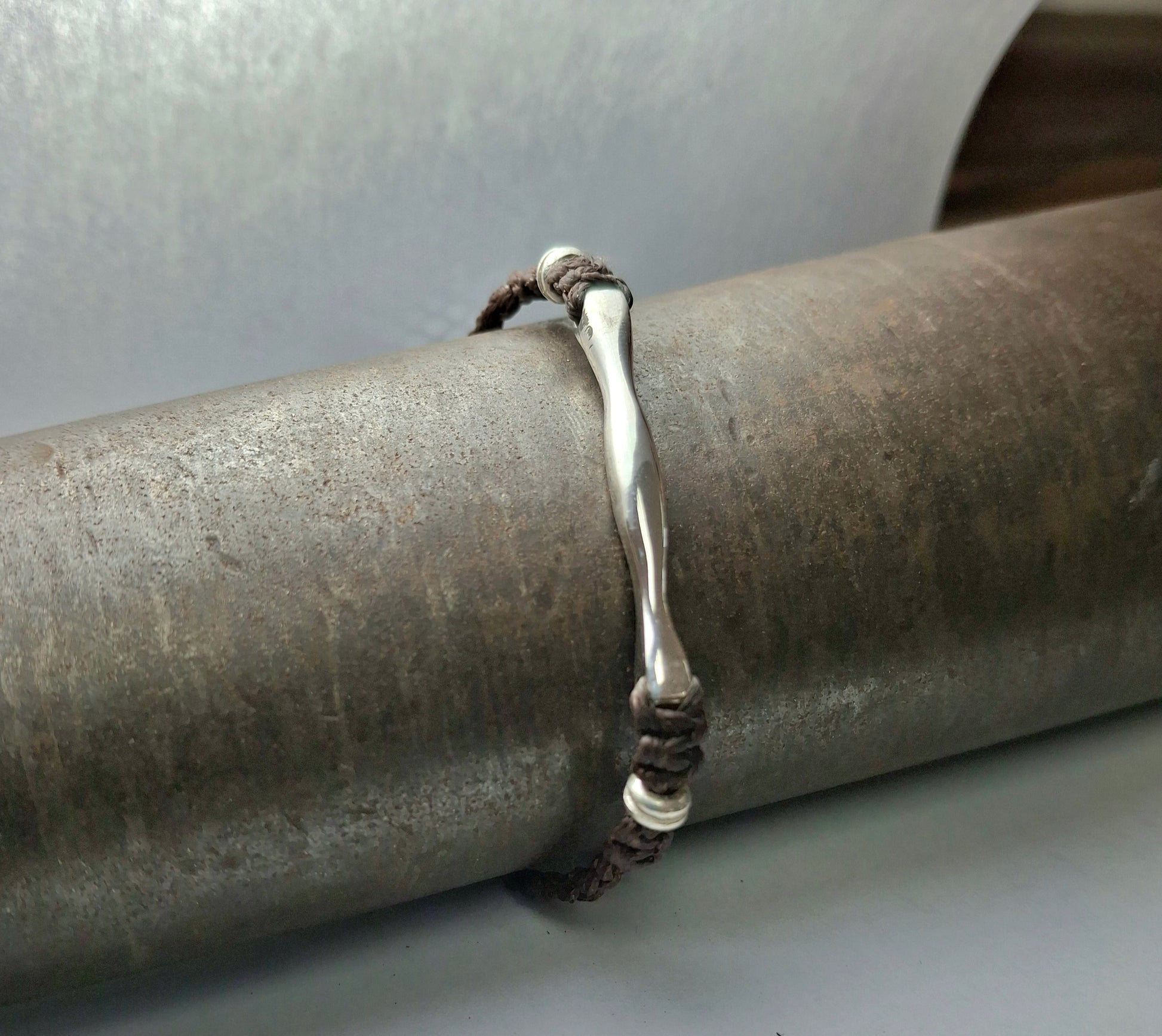 Leather bracelet with 925 sterling silver details and handmade designs.